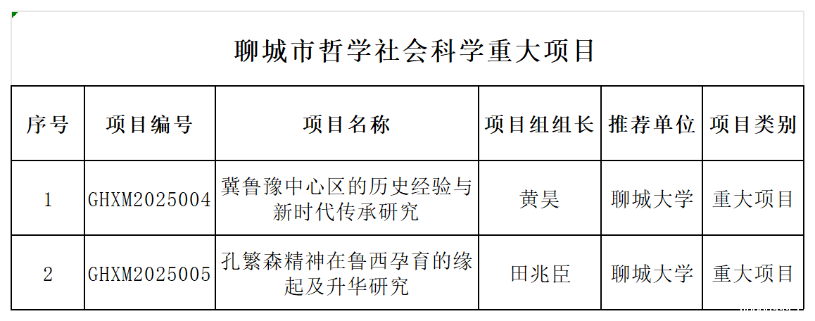 近日,聊城市社科联公布了2025年度哲学社会科学规划重大项目立项名单,我校2项课题获批立项。