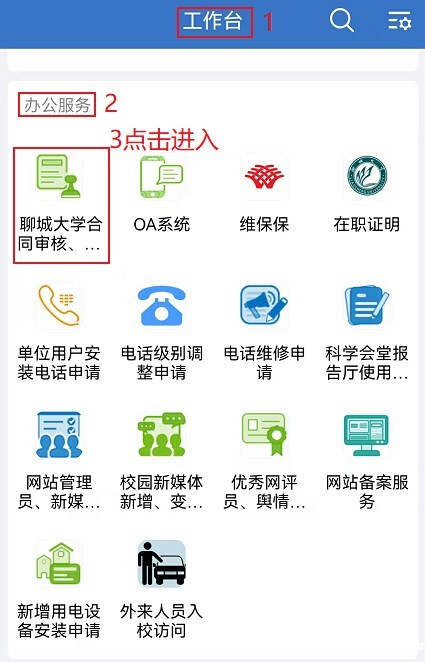 方式二:从企业微信工作台进入办公服务。